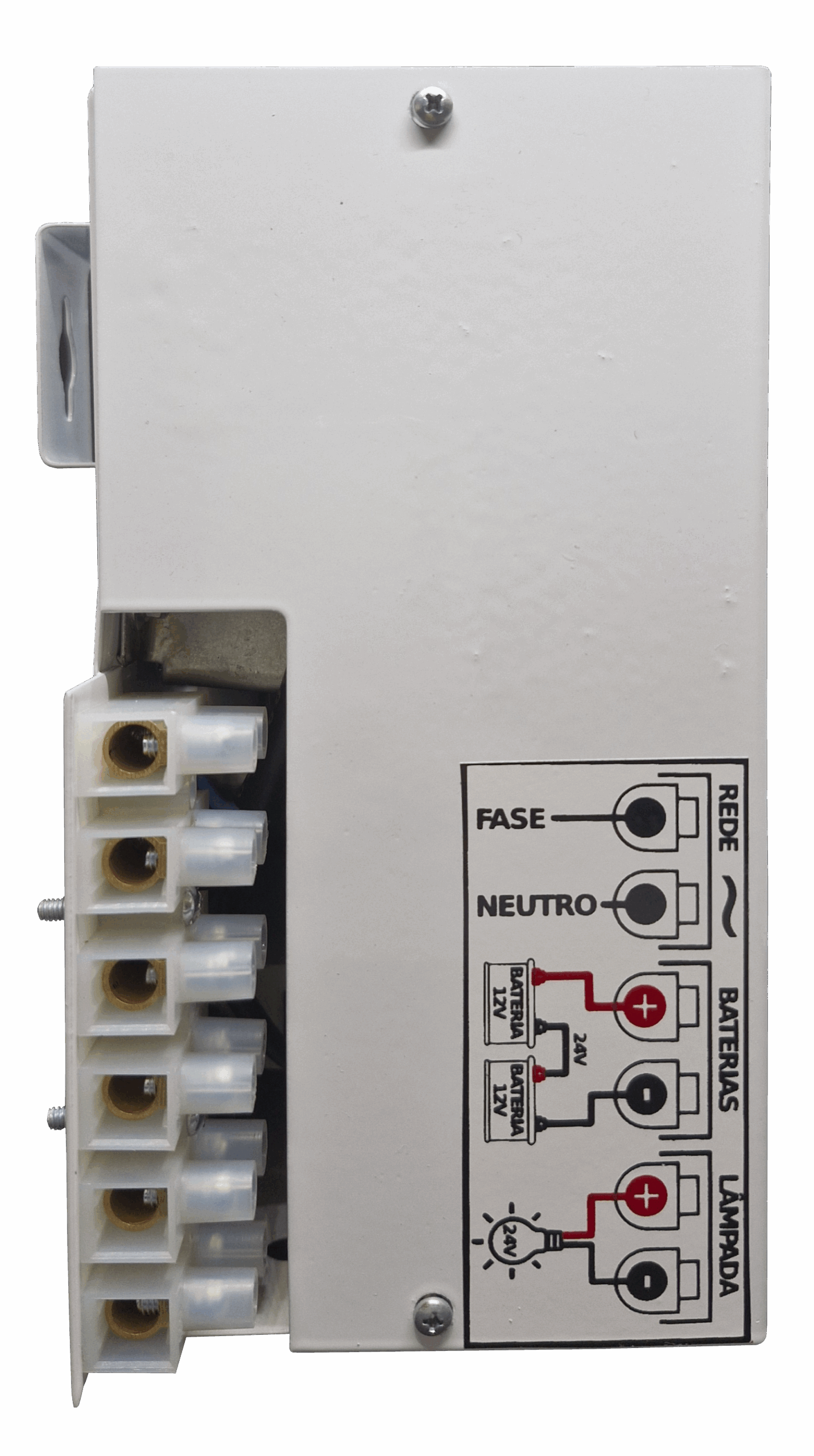 No momento que falta energia elétrica a central alimenta as luminárias de balizamento e/ou outras cargas com tensão de 24VDC com potência de 1200W